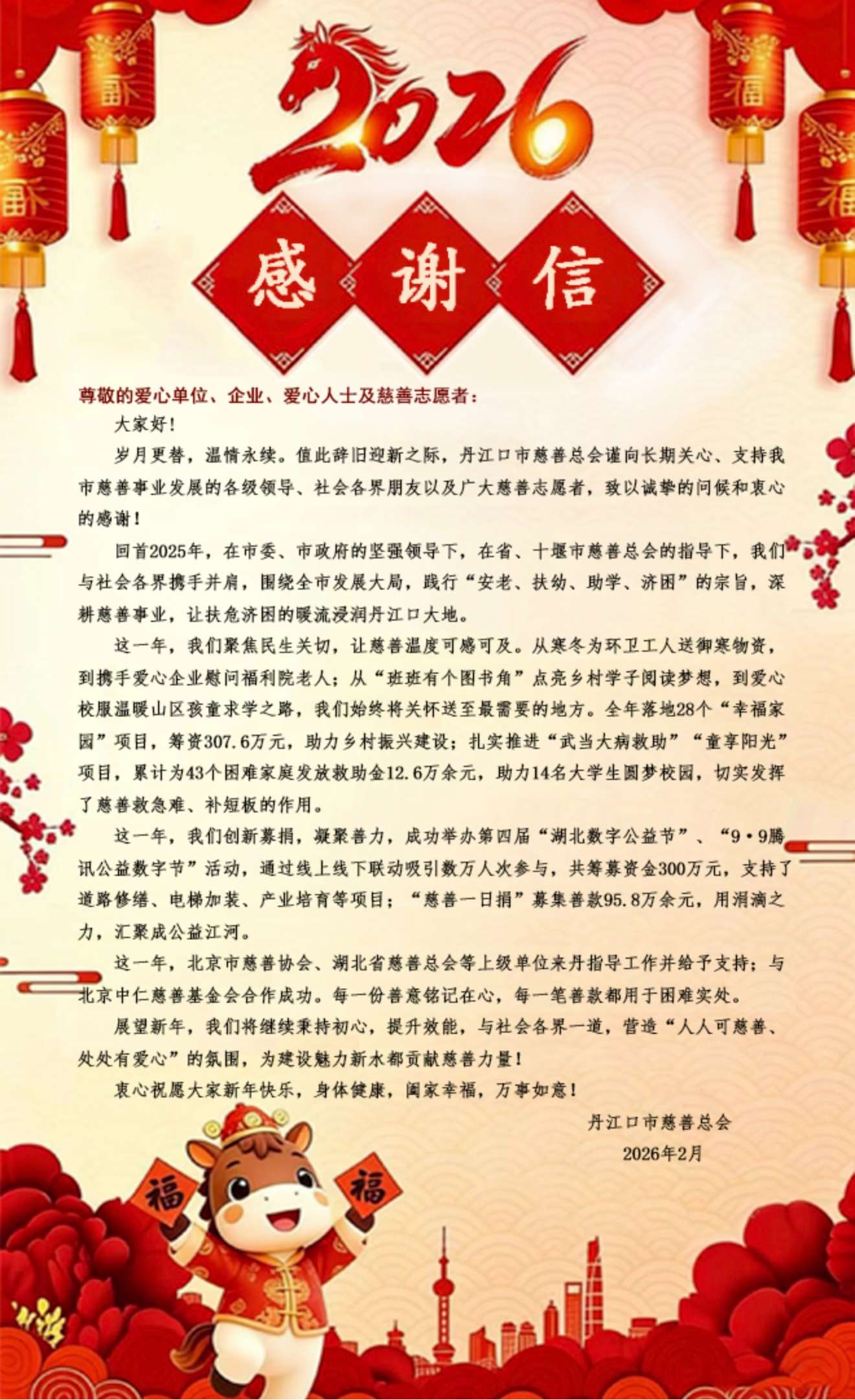 致爱心单位 、企业、人士和慈善志愿者的感谢信